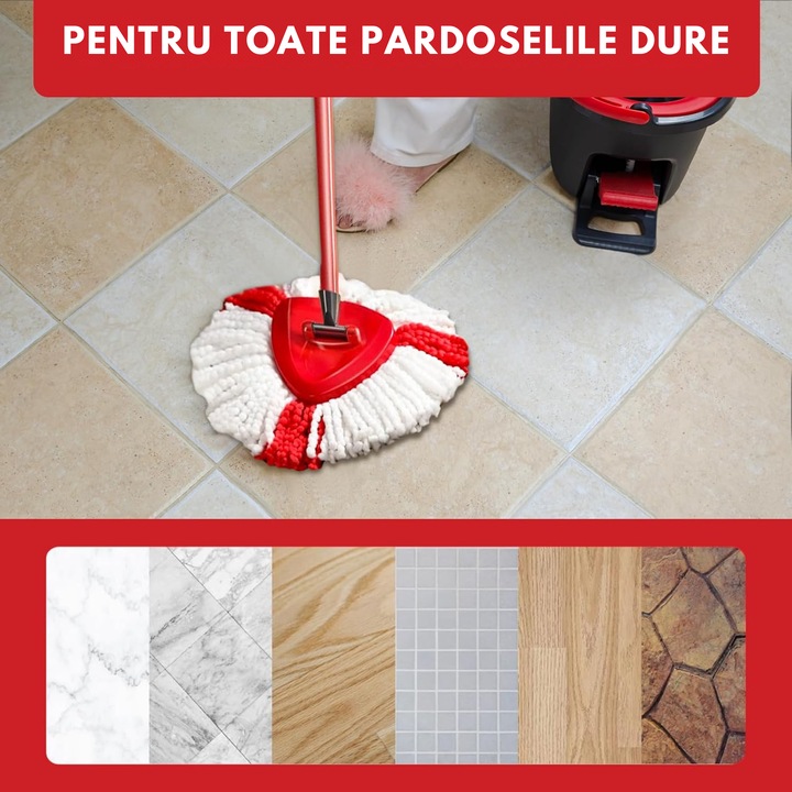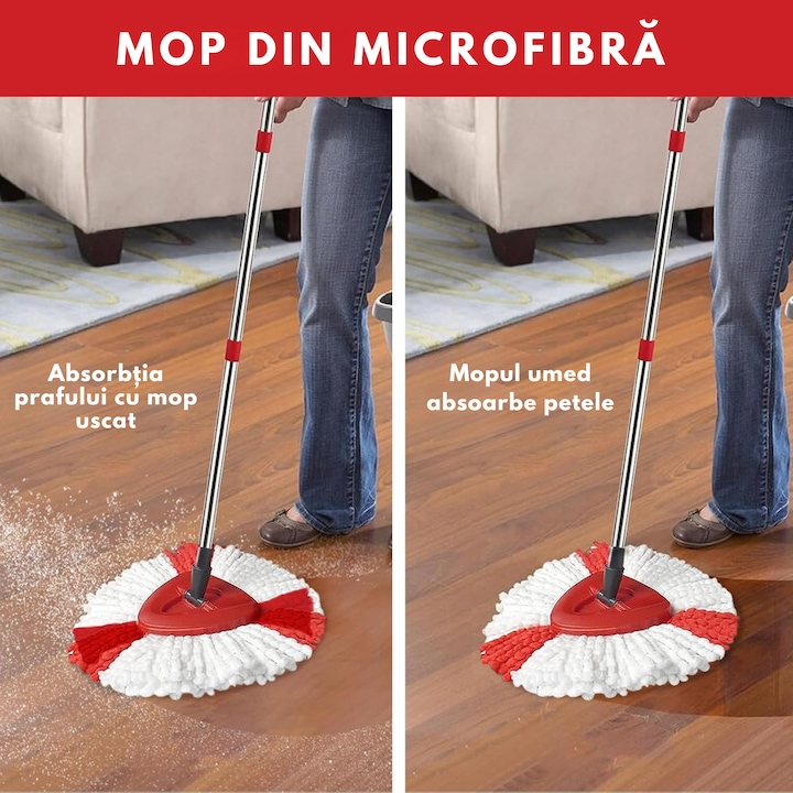 Este usor de montat si fixat pe capul mopului, fara a necesita efort suplimentar sau unelte speciale.