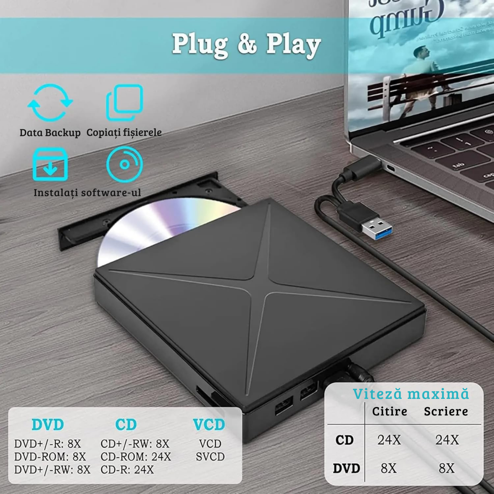 Aceasta unitate externa multifunctionala este alegerea ideala pentru cei care folosesc laptopuri, ultrabook-uri sau PC-uri moderne fara unitate optica.