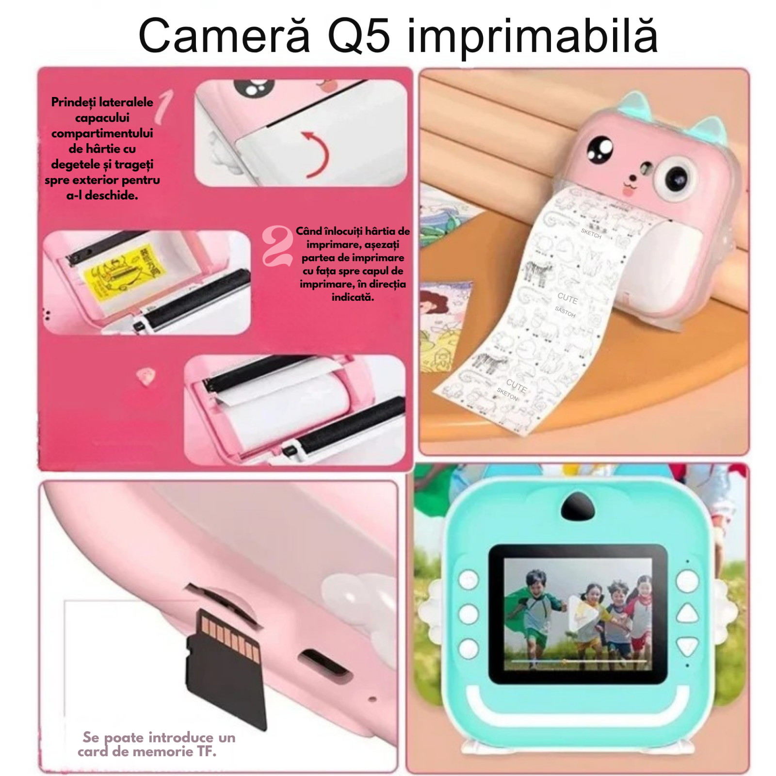 Camera incorporata permite copiilor sa faca fotografii instant, selfie-uri sau sa surprinda momente speciale. Imaginile pot fi vizualizate si printate imediat, oferind o experienta interactiva si creativa.