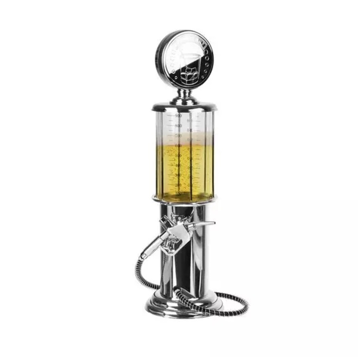 Transforma orice petrecere intr-o experienta memorabila cu acest distribuitor de bauturi cu design original, inspirat de un dozator de combustibil. O piesa functionala si decorativa in acelasi timp, acest aparat este perfect pentru a servi bauturi alcoolice si nealcoolice intr-un mod inedit si amuzant.