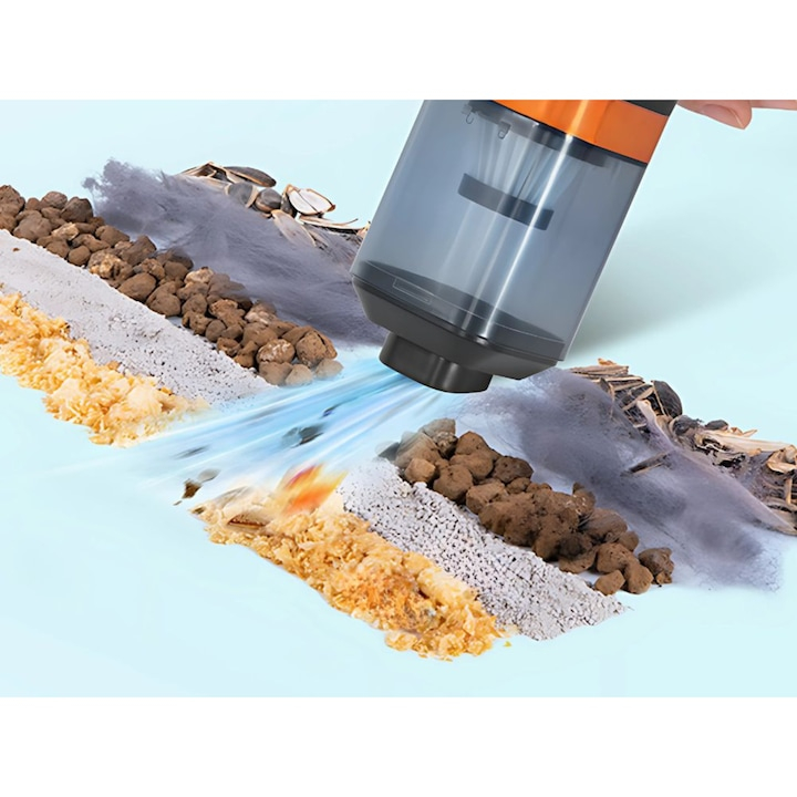 Designul wireless si compact al acestui aspirator auto fara fir iti ofera libertatea totala de miscare, fara sa te incurce cablurile sau sa depinzi de prize. Se potriveste perfect in palma datorita manerului ergonomic, iar materialul moale si durabil din plastic ABS asigura o prindere sigura si confortabila.