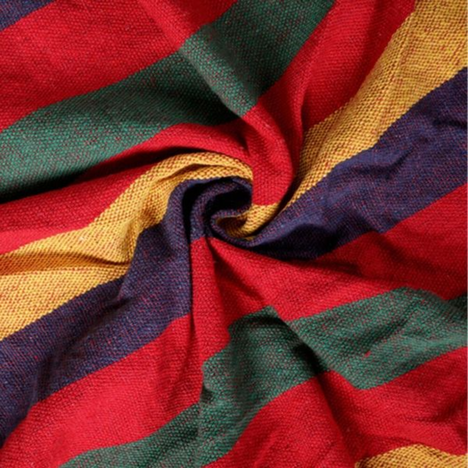 Suprafata hamacului de 185 x 80 cm ofera suficient spatiu pentru relaxare completa, fie ca vrei sa citesti, sa te odihnesti sau sa te bucuri de aer liber. Materialul din bumbac este placut la atingere si permite o ventilatie optima.