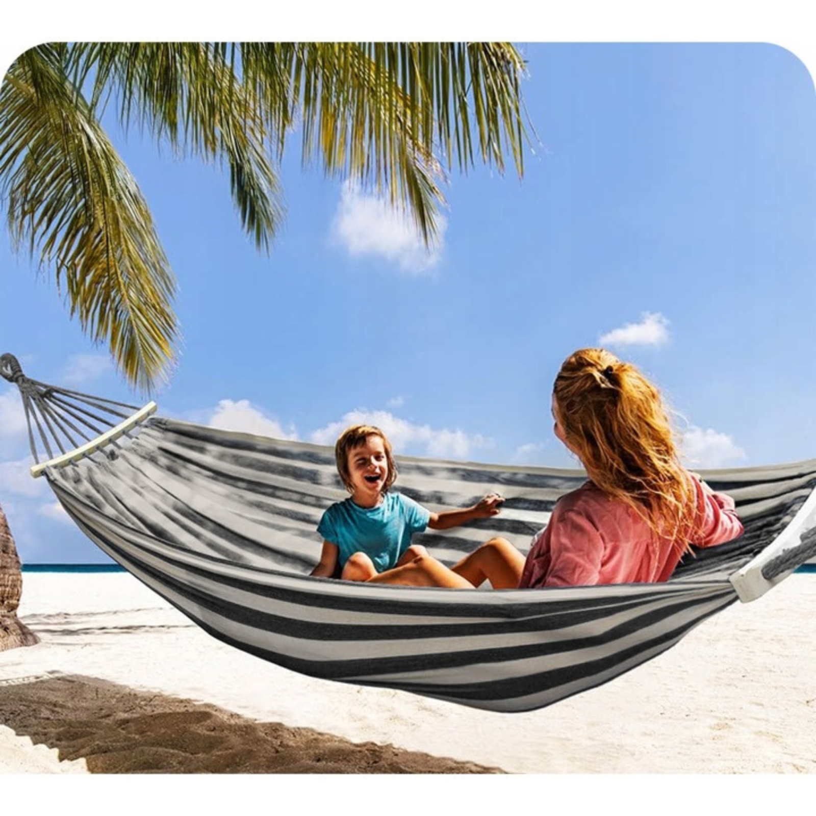 Hamacul nu este doar un element funcțional, ci și un accesoriu estetic, potrivit pentru orice grădină, balcon sau terasă. Designul său elegant și modern completează armonios mobilierul exterior, oferind un spațiu relaxant unde poți citi, dormi sau savura o băutură răcoritoare. În camping, servește drept alternativă confortabilă la șezlong, asigurând momente de relaxare oriunde te afli.