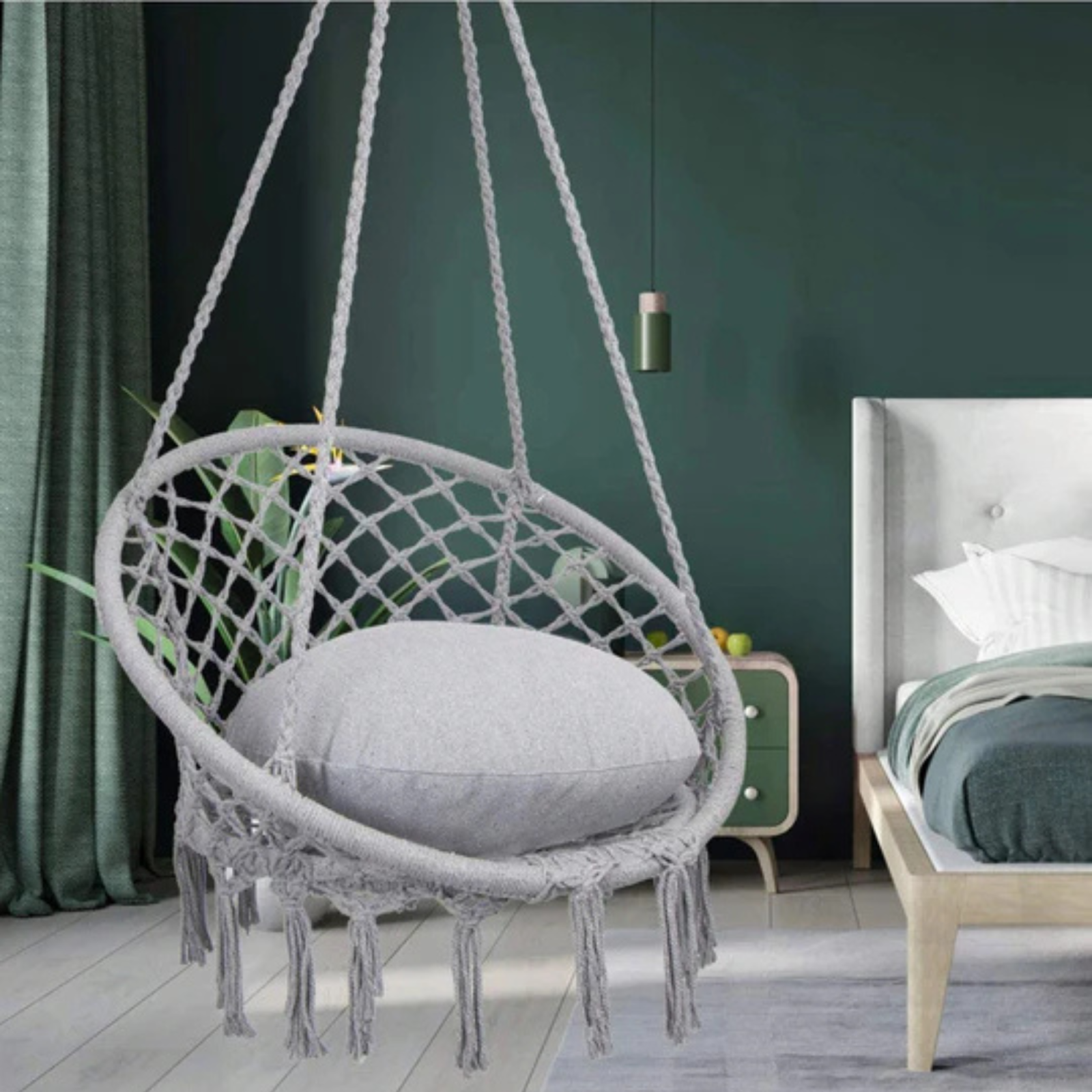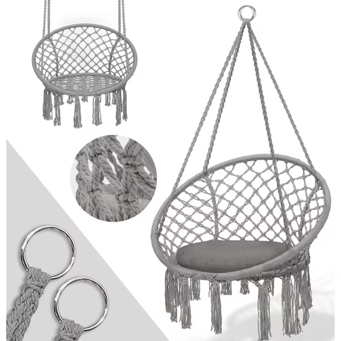 • Potrivit pentru interior și exterior – îl poți folosi ca scaun suspendat pentru balcon, leagăn pentru grădină sau balansoar pentru living, adaptându-se ușor oricărui spațiu