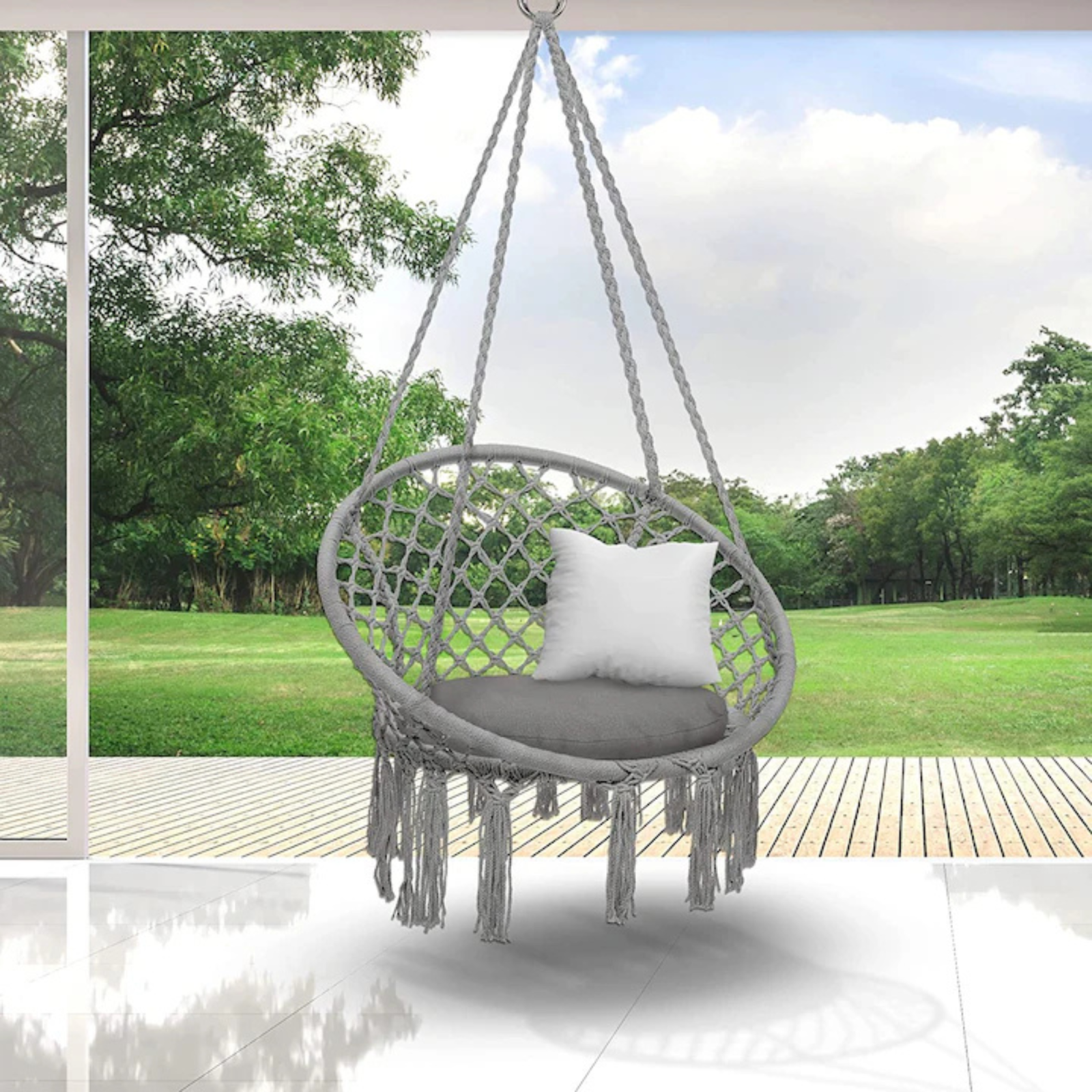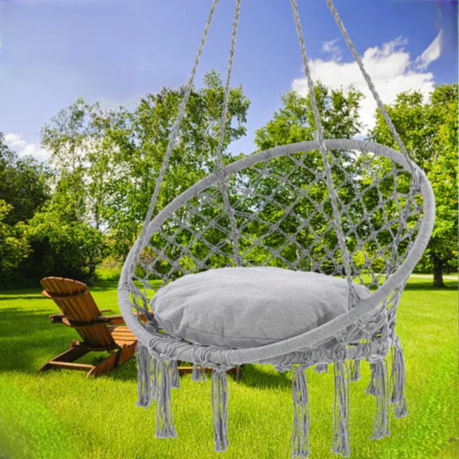 • Confort ridicat pentru relaxare zilnică – acest leagăn suspendat are un șezut generos și vine cu pernă inclusă, oferind o poziție comodă pentru citit, stat pe telefon sau relaxare