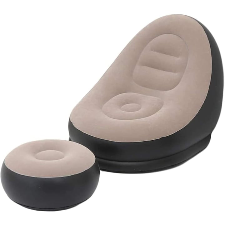 Set fotoliu gonflabil VarioShop cu suport pentru picioare, exterior catifelat, PVC durabil, dimensiuni mari, rezistent la apa, ideal pentru relaxare acasa sau in aer liber, cu pompa inclusa, Crem/Negru