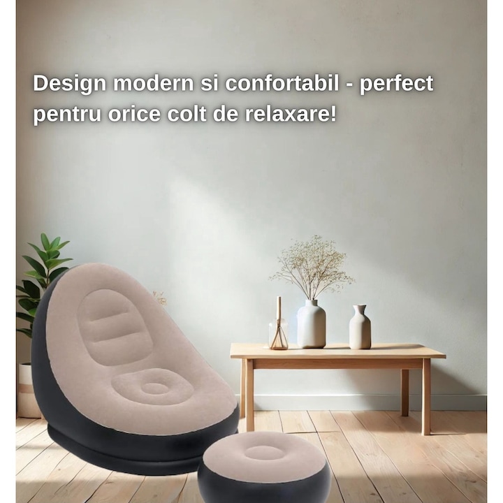Taburet inclus – pentru un plus de relaxare, setul contine si un suport pentru picioare gonflabil, perfect pentru momentele de odihna.