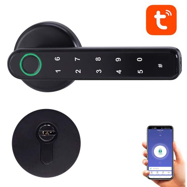 • Moduri de acces: amprenta digitala, parola, cheie, aplicatie Tuya Smart