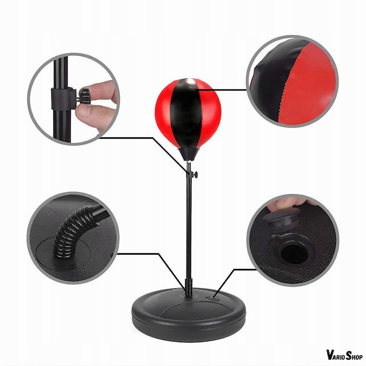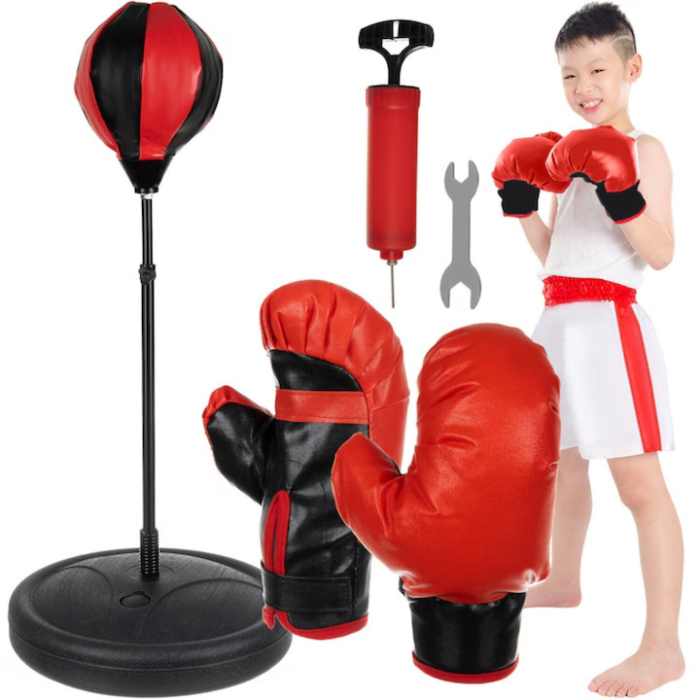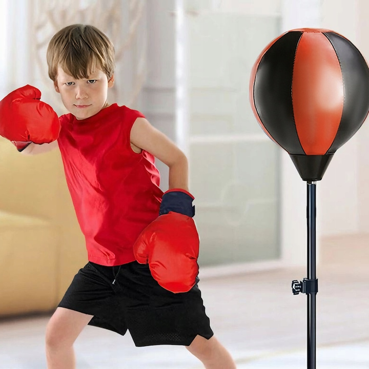 Sacul de box este echipat cu o para gonflabila, care permite ajustarea duritatii pentru a se potrivi perfect nevoilor copilului. Gratie arcului de inalta calitate, punga de box revine rapid la pozitia initiala dupa fiecare lovitura, oferind o experienta autentica de antrenament. Miscarea multidirectionala adauga un plus de dificultate si distractie, ajutand copilul sa-si dezvolte reflexele si coordonarea.