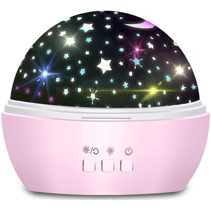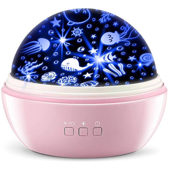 Lampa de veghe pentru copii VarioShop®, Proiector cu Stele si Luna / Viata Marina, Ideal pentru Somn, Camera Copilului, 2 Filtre Detasabile, 12 x 12 x 10 cm, Roz