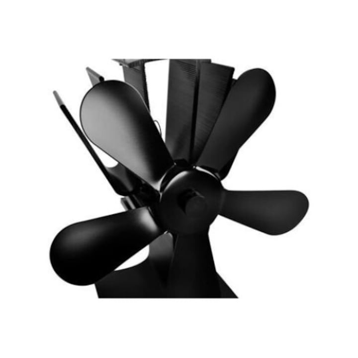 Ventilator mecanic pentru semineu VarioShop®, 5 pale, maner practic, porneste la 60°C, temperatura maxima de 345°C, aluminiu/ otel inoxidabil, 10.5 x 7.5 x 24 cm, negru