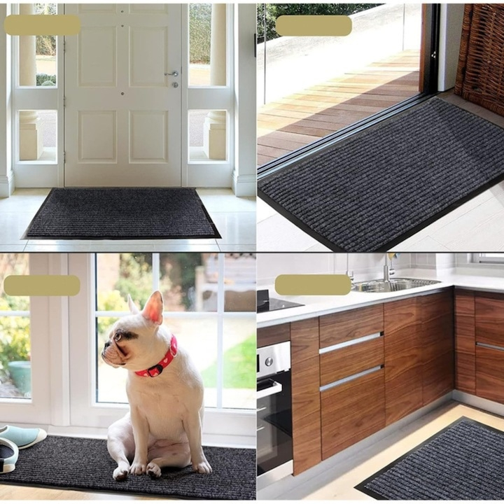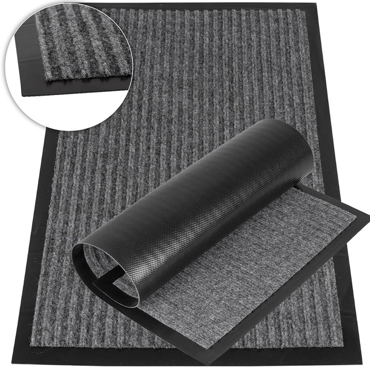 Culoarea neutra (gri) si forma dreptunghiulara fac ca acest covoras sa se integreze armonios in orice decor, fie ca este vorba despre un spatiu rezidential sau comercial. Aspectul sau elegant nu afecteaza estetica intrarii, ci o completeaza discret.