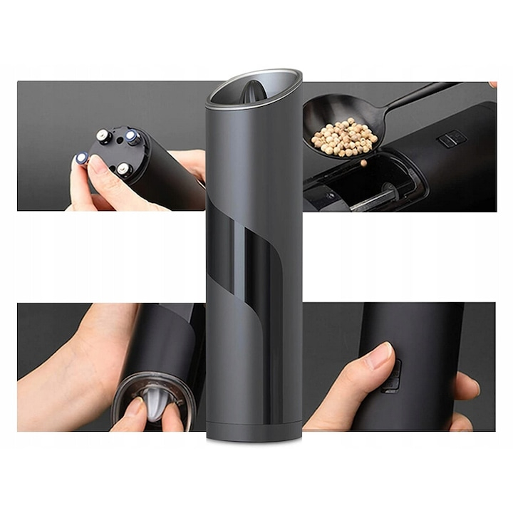 Rasnita Electrica VarioShop® Cu Inductie Gravitationala Pentru Condimente, Indicator LED, Grosime Reglabila, Negru