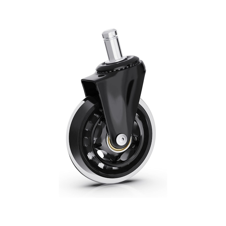 Roata din silicon moale pentru scaune de birou VarioShop, silentios, rezistente, protejeaza podeaua, cu rulmenti de inalta calitate, diametru tija 11 mm, Negru