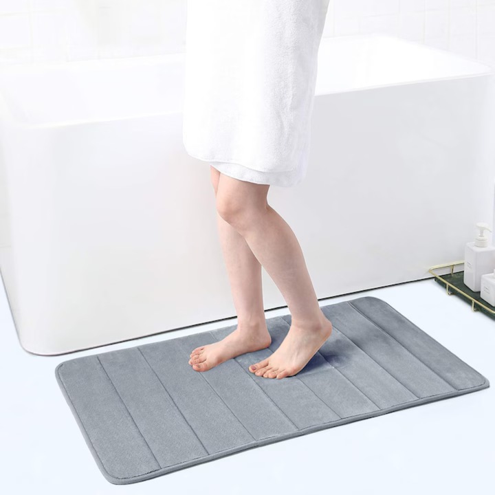 Partea inferioara este prevazuta cu un strat TPR antiderapant, care garanteaza stabilitate chiar si pe suprafete umede si alunecoase, prevenind deplasarea covorului si oferind siguranta suplimentara pentru intreaga familie. Materialul flexibil si elastic permite covorului sa isi pastreze forma in timp, amintindu-si conturul picioarelor, ceea ce contribuie la un confort sporit la fiecare utilizare.