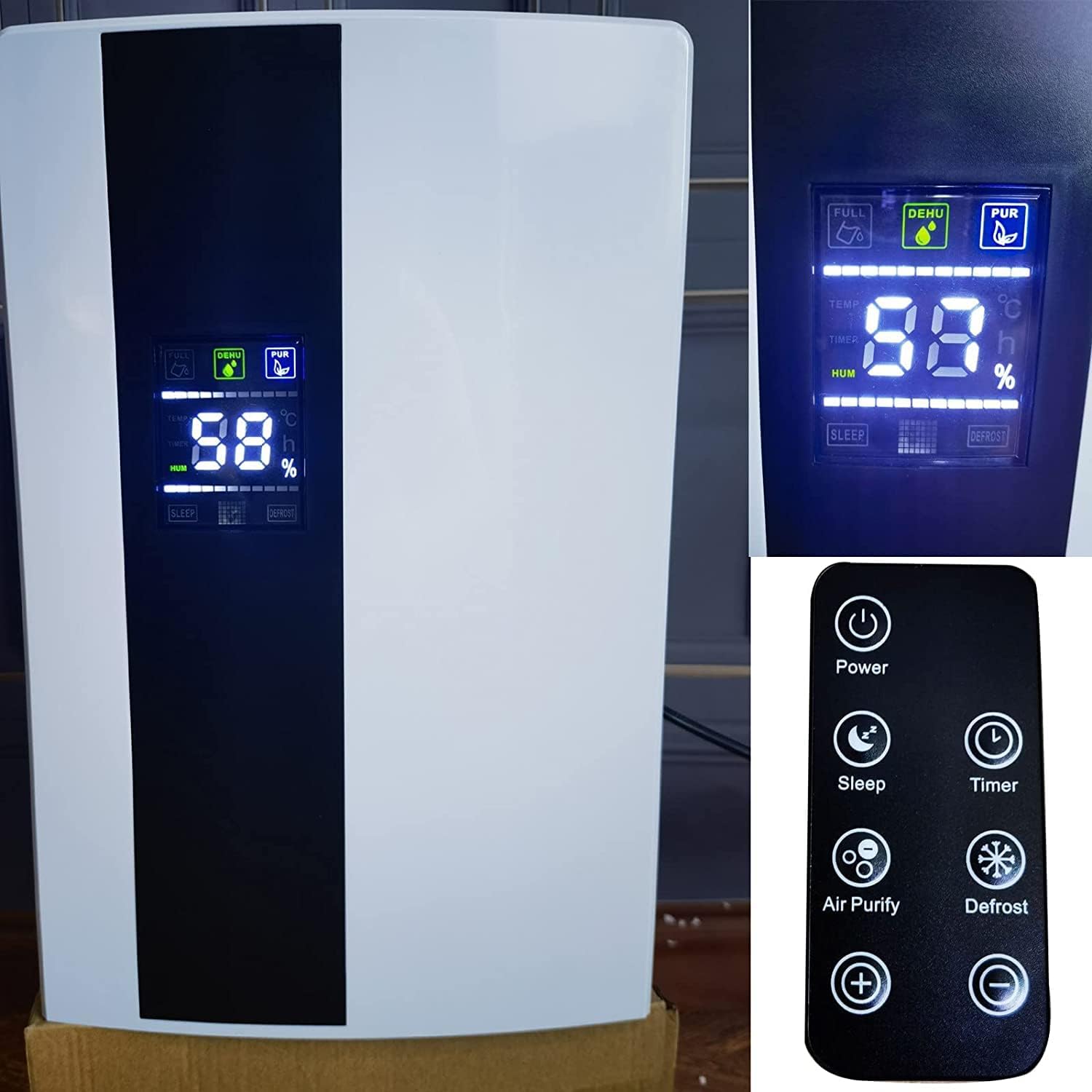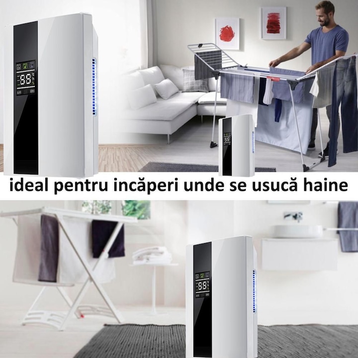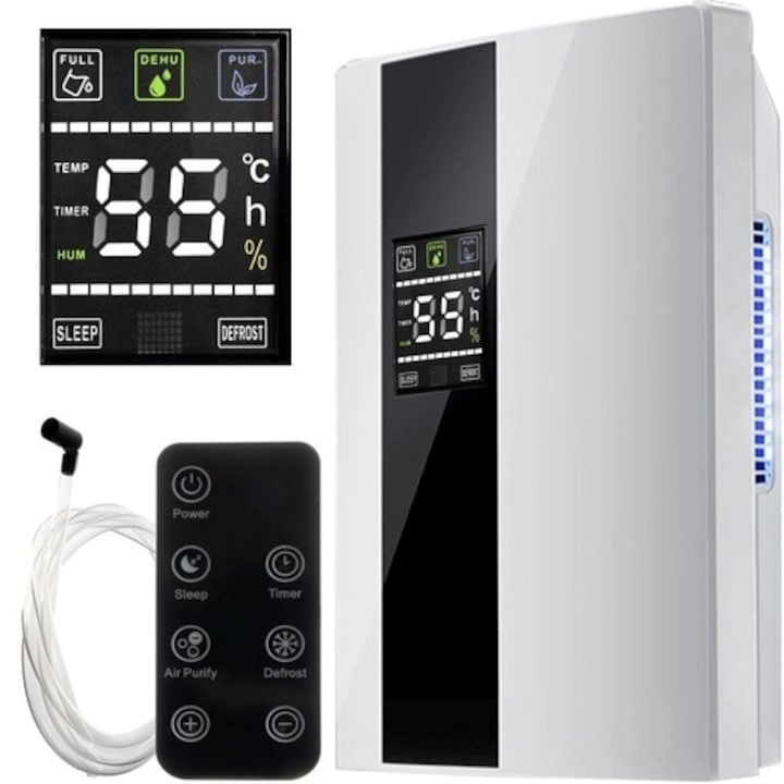 Dezumidificator si Purificator de Aer VarioShop®, Afisaj Temperatura/Umiditate, Tehnologie Peltier, Silentios, Anti-Mucegai, Telecomanda, Randament 650ml/zi, Putere 90W, Alb