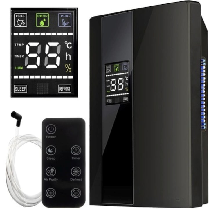 VarioShop® Dezumidificator si Purificator de Aer VarioShop®, Afisaj Temperatura/Umiditate, Tehnologie Peltier, Silentios, Anti-Mucegai, Telecomanda, Randament 650ml/zi, Putere 90W, Negru
