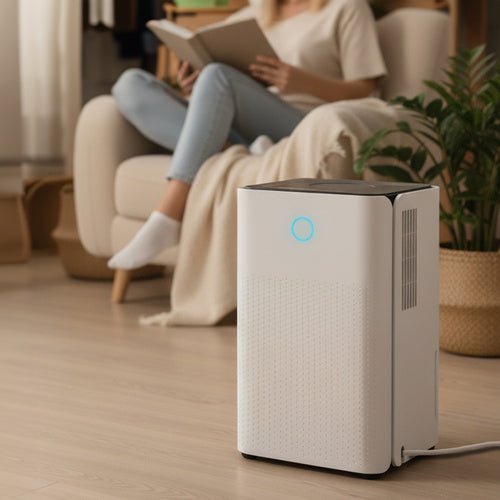 Control convenabil prin aplicatie Wi-Fi. Silentios si eficient, perfect pentru dormitor sau birou.