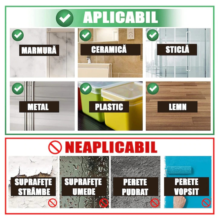 • Utilizare pe Orice Suprafata: Ideala pentru suprafete netede sau neporoase, precum sticla, metal, lemn sau plastic.