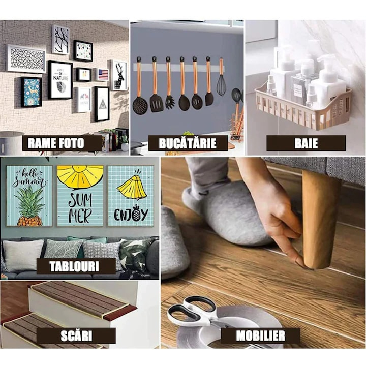 • Aplicare Rapida: Curata suprafata, lipeste banda si fixeaza obiectul dorit – este atat de simplu!