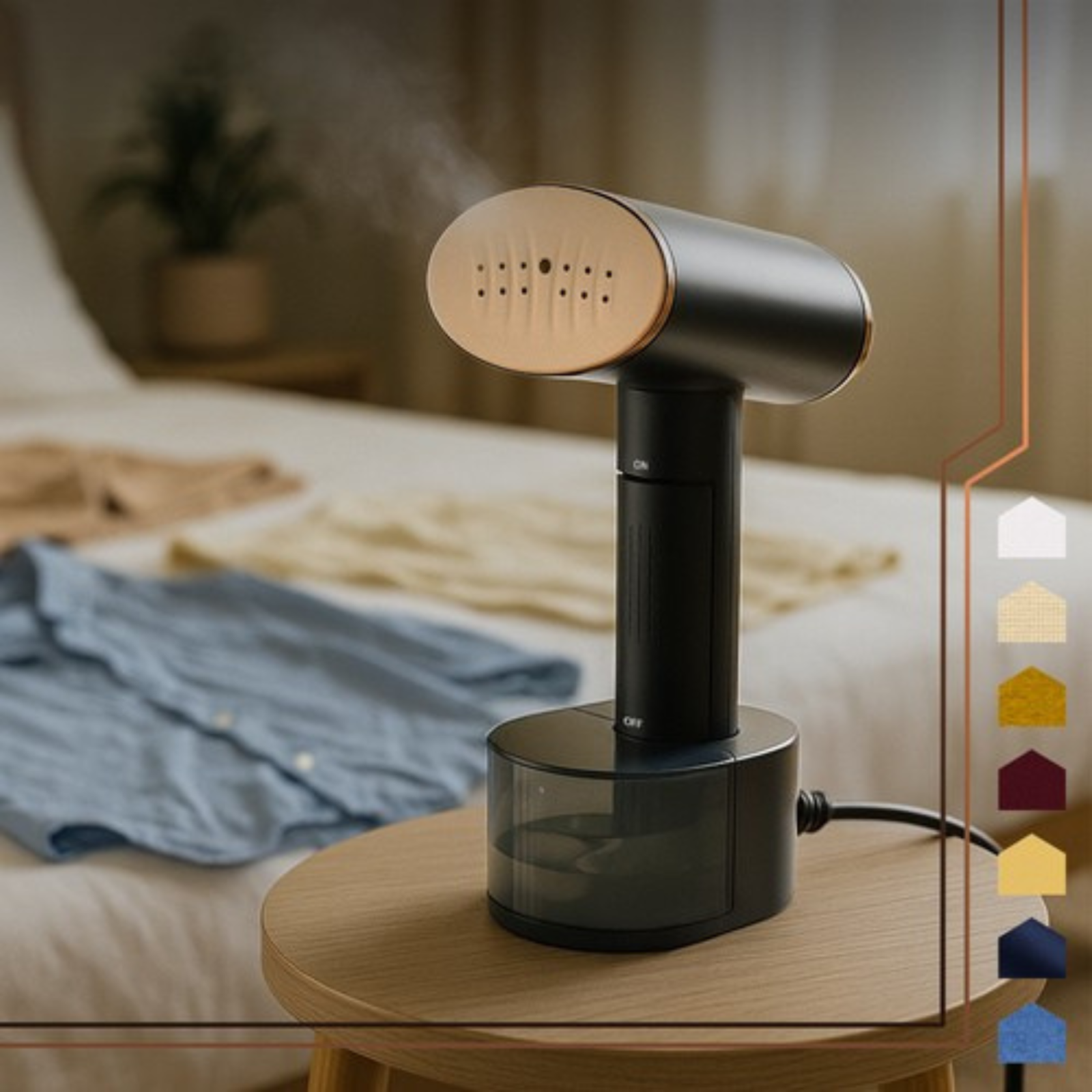 Calcare verticala si orizontala – ideal pentru rochii, sacouri, pantaloni sau perdele, fara masa de calcat.