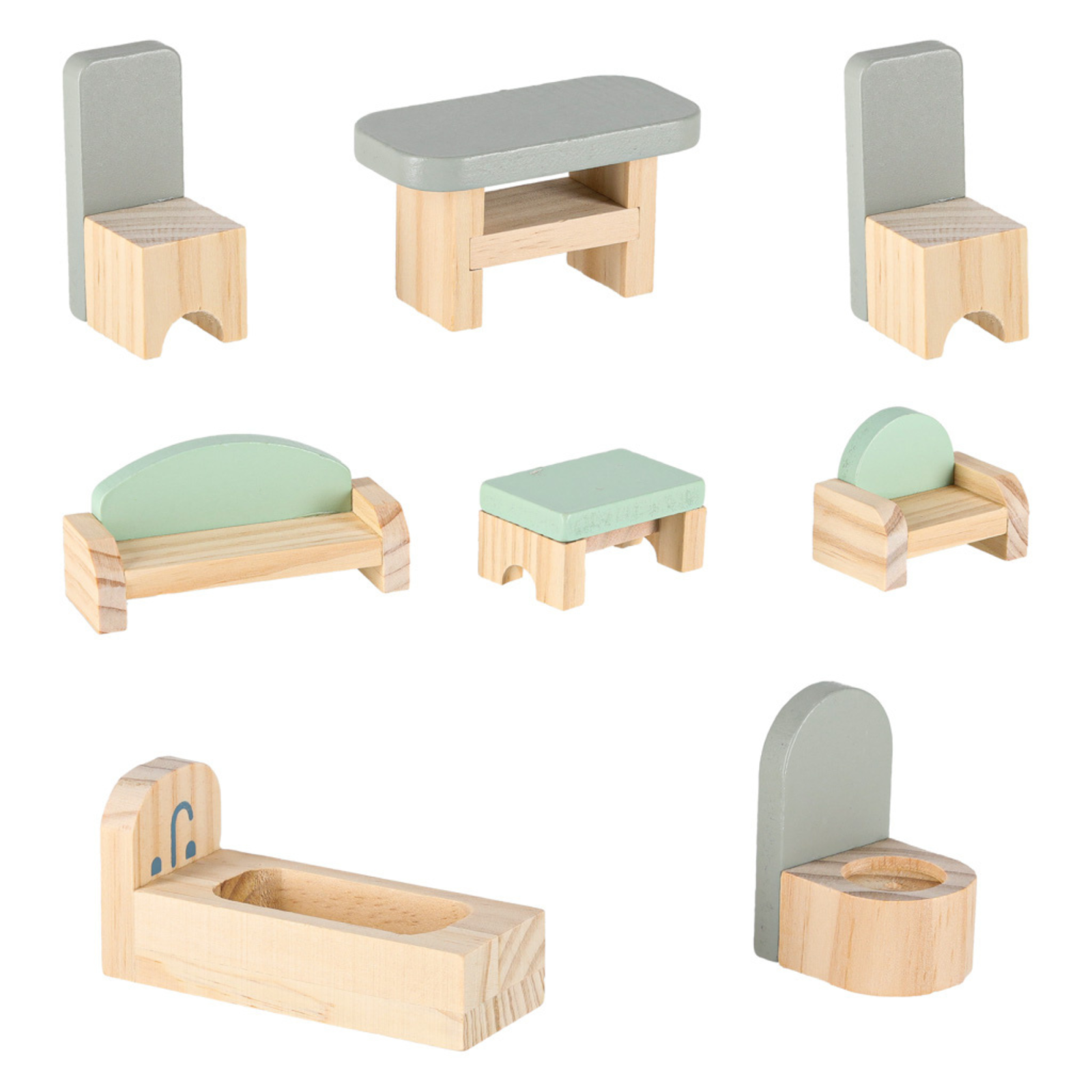 Setul include mobilier variat, realizat din lemn si conceput pentru a fi usor de manevrat si rearanjat. Copiii pot personaliza fiecare incapere, dezvoltandu-si simtul estetic si creativitatea.