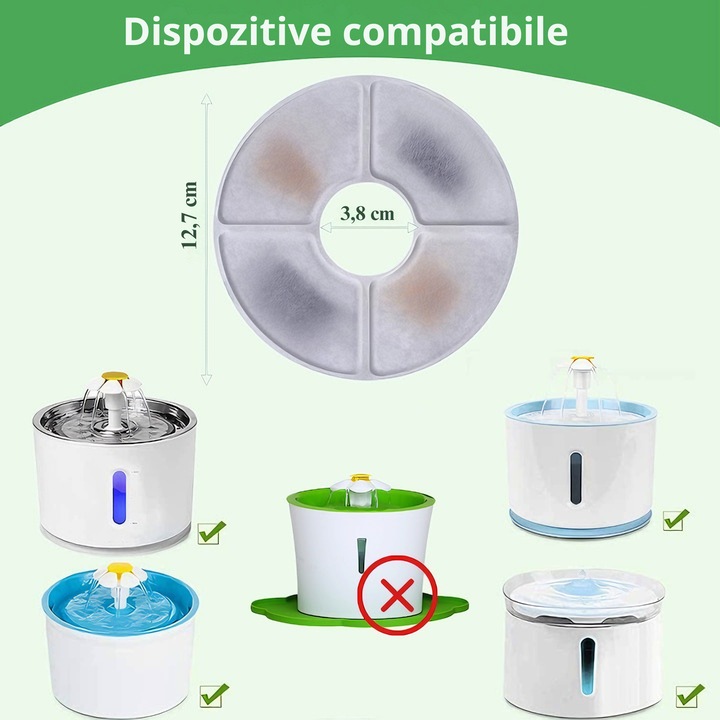 Aceste filtre sunt proiectate pentru a fi compatibile cu multe modele de fantani pentru animale de companie disponibile pe piata. Asigurati-va ca verificati dimensiunile inainte de achizitie pentru a garanta potrivirea perfecta.