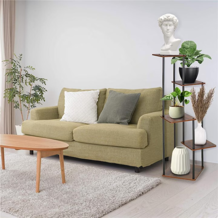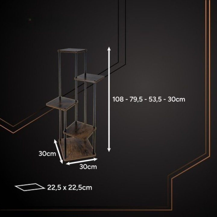Cu 5 niveluri de expunere, acest suport permite aranjarea mai multor ghivece intr-un mod compact, economisind spatiu si adaugand un accent decorativ rafinat.