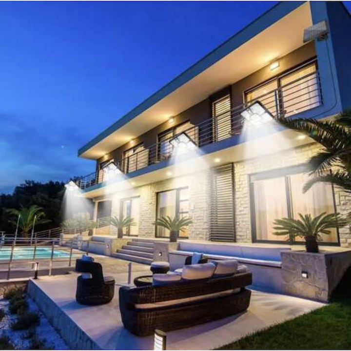 Aceasta lampa solara LED cu 220 de diode SMD + 15 COB ofera o iluminare eficienta si versatila pentru curte, gradina, alee sau intrarea in locuinta. Este echipata cu senzori inteligenti si telecomanda multifunctionala, permitand un control complet al modului de functionare.