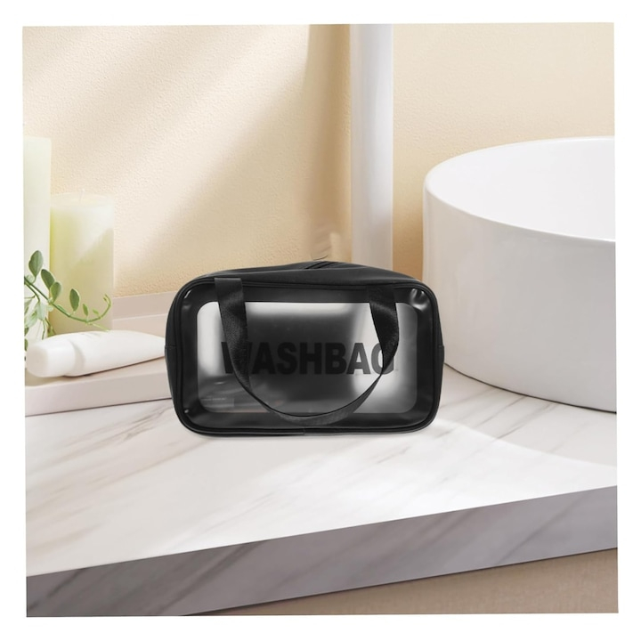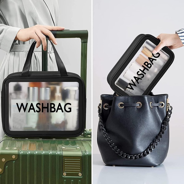 Geanta de cosmetice de calatorie VarioShop®, impermeabila, spatioasa, cu maner, fermoar si vizier, translucida, 30 x 21 x 12 cm