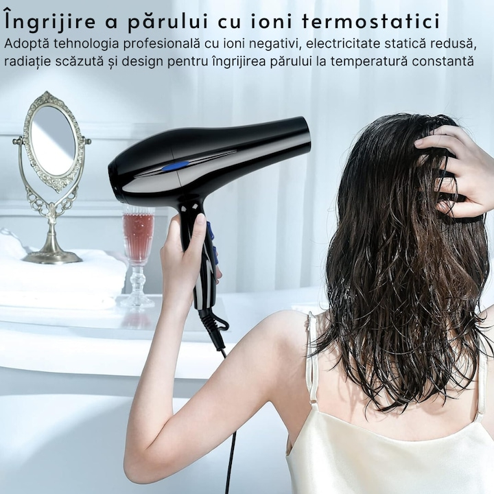 Tehnologia de Ionizare Avansata: Ionizarea neutralizeaza efectul static, prevenind incretirea parului. Obtineti un par mai moale si mai usor de coafat, fara fire rebele, oferindu-i un aspect natural si sanatos.