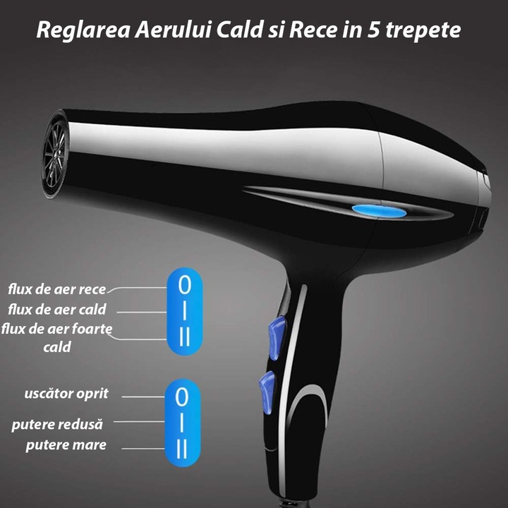 1 - aer cald pentru uscare rapida fara deteriorarea parului