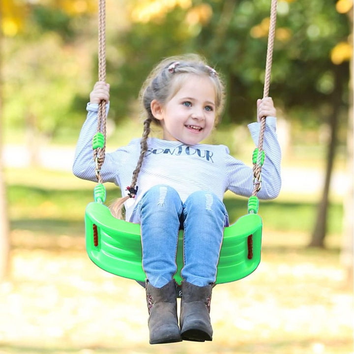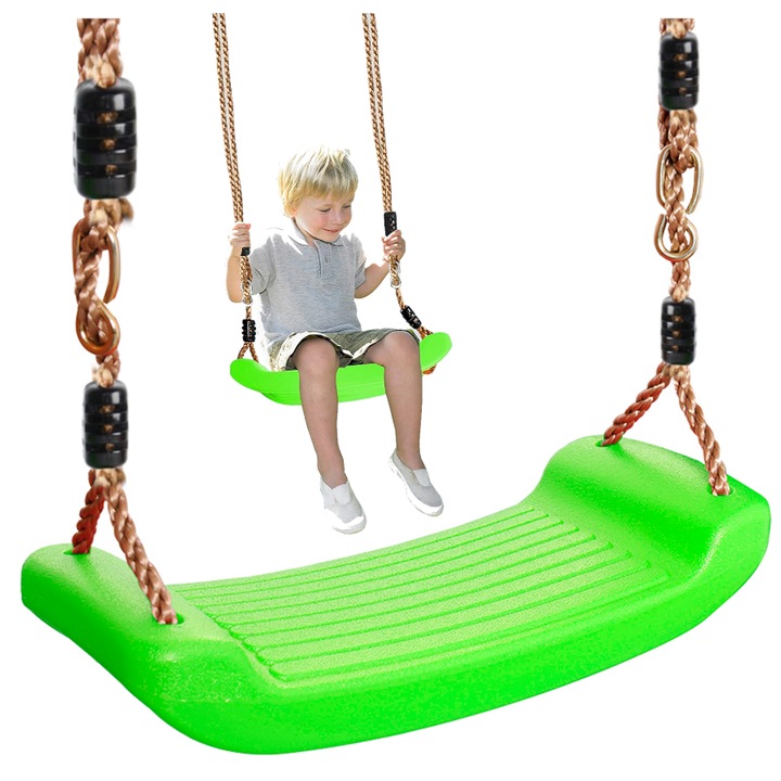 Leagan pentru copii Varioshop din plastic rezistent, cu franghii reglabile 175 cm si elemente de prindere, suporta pana la 50 kg, 43 x 16, 5 cm, Verde
