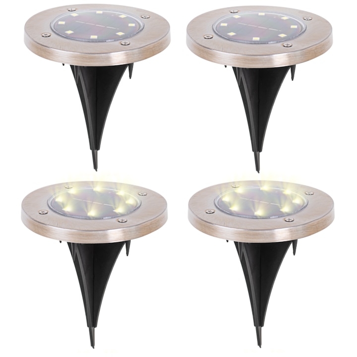 Adauga o nota de rafinament si functionalitate curtii sau gradinii tale cu acest set de 12 lampi solare LED. Fiecare lampa este echipata cu 8 LED-uri luminoase si functioneaza pe baza de energie solara, ceea ce inseamna zero costuri suplimentare la factura de electricitate.