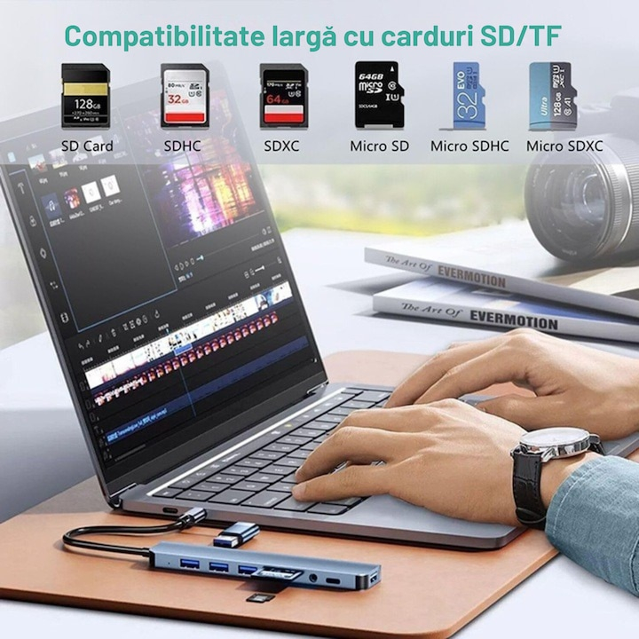 Cu acest hub USB-C 8-in-1, esti mereu pregatit pentru munca, divertisment sau proiecte creative – oriunde te-ai afla.