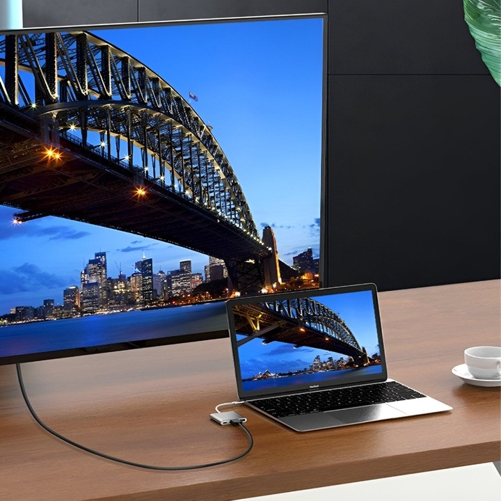 Adaptorul sustine transferul de video si audio de calitate inalta, cu rezolutie 4K (3840x2160) pentru o experienta vizuala extraordinara. De asemenea, este compatibil cu FULL HD 60 fps (60 Hz) si ULTRA HD 30 fps (30 Hz), astfel incat poti conecta laptopul la un televizor sau monitor mare si sa te bucuri de imagini clare si detaliate.