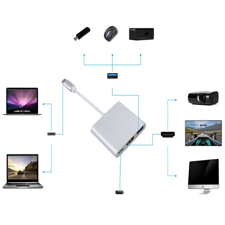 Intr-o era in care laptopurile si notebookurile sunt tot mai compacte si eficiente, dar cu un numar limitat de porturi, Adaptorul USB-C la USB/HDMI/USB 3.1 devine un accesoriu esential. Acesta iti ofera posibilitatea de a extinde capacitatile de conectivitate ale dispozitivului tau, oferindu-ti porturi suplimentare pentru a conecta diverse dispozitive, precum televizoare, stick-uri USB sau orice echipament compatibil cu USB.