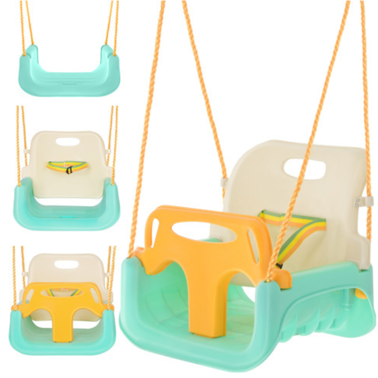 Design 3 în 1 adaptabil – Balustrada și spătarul detașabile permit transformarea leagănului în funcție de vârsta copilului. Poți trece ușor de la un balansoar pentru bebeluși la un scaun sigur pentru copii mai mari, economisind bani și spațiu.