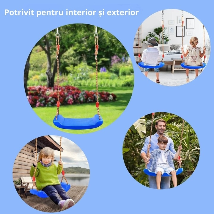 Leagan pentru copii Varioshop din plastic rezistent, cu franghii reglabile 175 cm si elemente de prindere, suporta pana la 50 kg, 43 x 16, 5 cm, Albastru