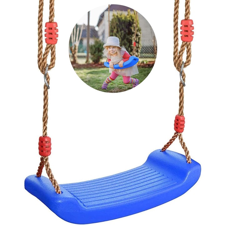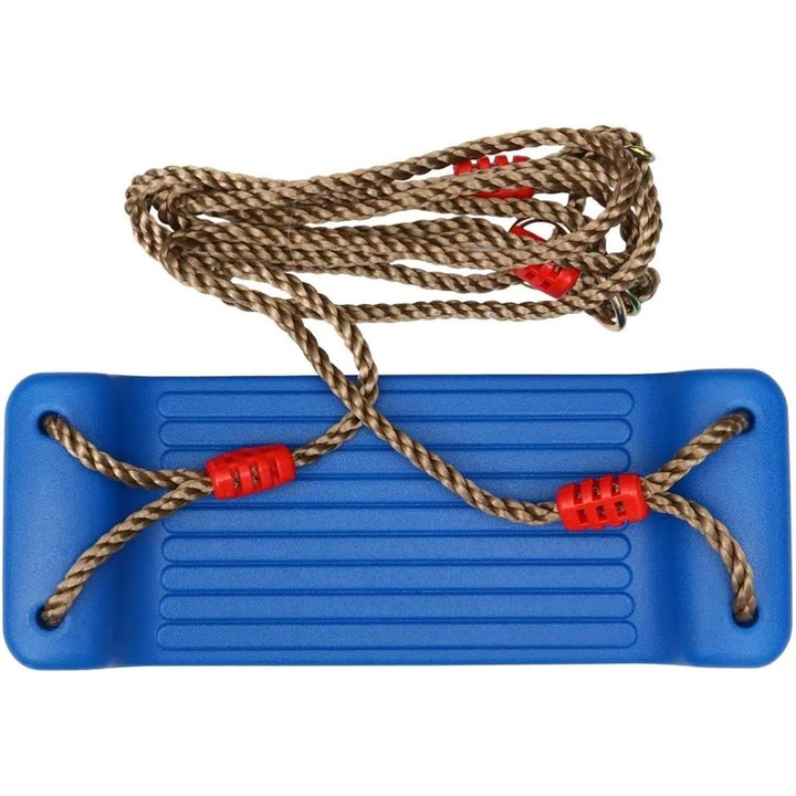 Leagan pentru copii Varioshop din plastic rezistent, cu franghii reglabile 175 cm si elemente de prindere, suporta pana la 50 kg, 43 x 16,5 cm, Albastru