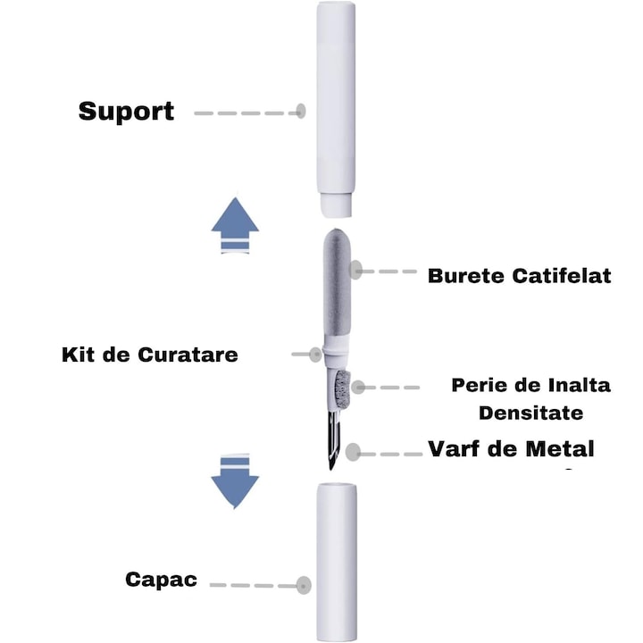 Cu timpul, murdaria acumulata in casti, porturile de incarcare, tastaturi si alte dispozitive electronice poate afecta performanta acestora. Acest dispozitiv de curatare 3-in-1 este solutia perfecta pentru a mentine curate toate gadgeturile tale preferate.