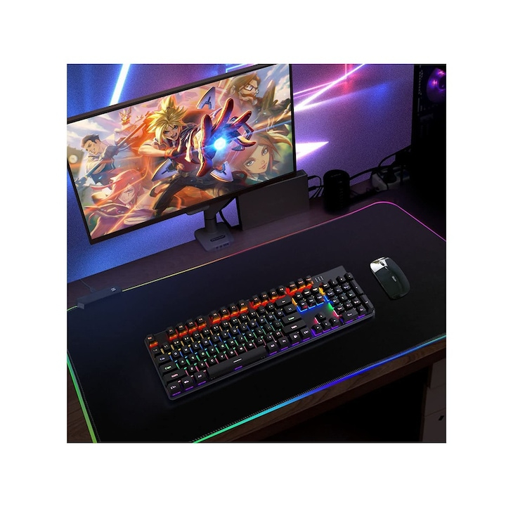 Mousepad de gaming VarioShop® cu iluminare LED, Confectionat din material flexibil, antiaderent si rezistent la umiditate, 4 module de iluminat, 7 culori, Cablu de aprox. 180 cm, Calitate premium, Dim