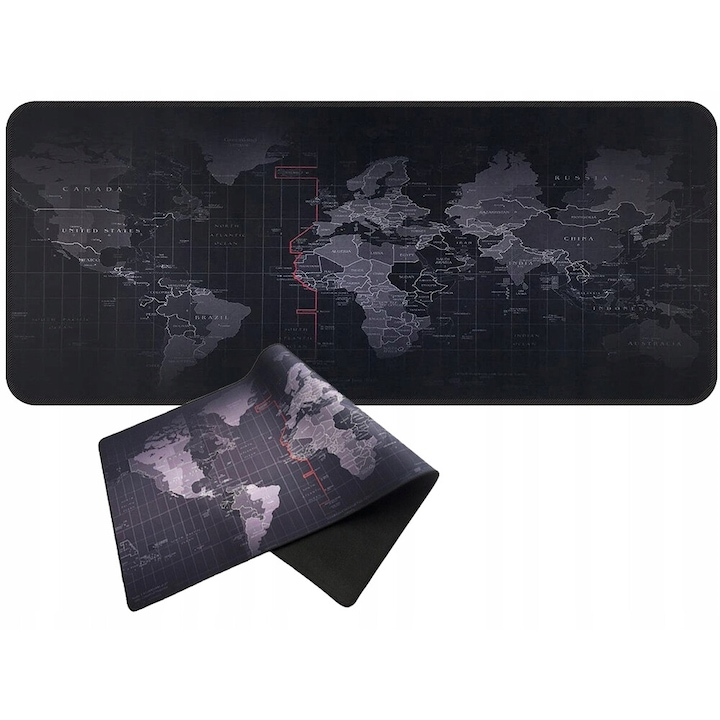 Mousepad Mare Cauciucat VarioShop®, Pentru Gaming, Birou, Office, Antiderapant, Rezistent la Apa, Cusaturi Anti-Rupere, model Harta Lumii, 80 x 30 cm, Negru