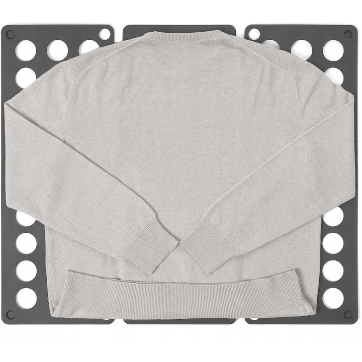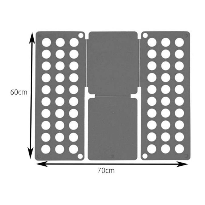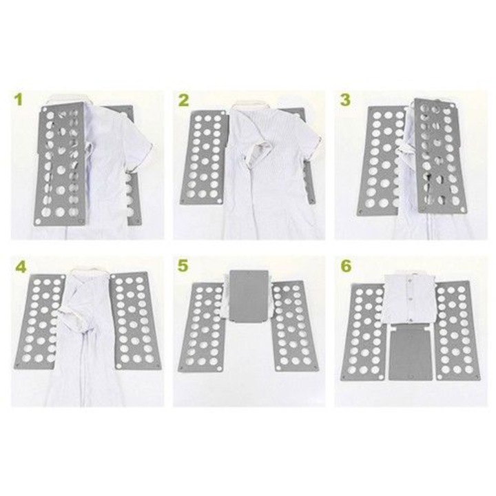 Dispozitiv pentru impaturit haine VarioShop®, pentru camasi, tricouri, pulovere, versatil, utilizare usoara, usor de depozitat, 60 x 70 cm, Gri