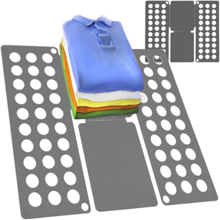 Te-ai saturat de hainele sifonate si de dulapul dezordonat? Placa pliabila pentru haine este solutia ideala pentru a-ti mentine garderoba ordonata si organizata! Cu doar trei miscari simple, vei plia perfect tricourile, camasile, hanoracele sau hainele copiilor, economisind timp pretios si spatiu in dulap.