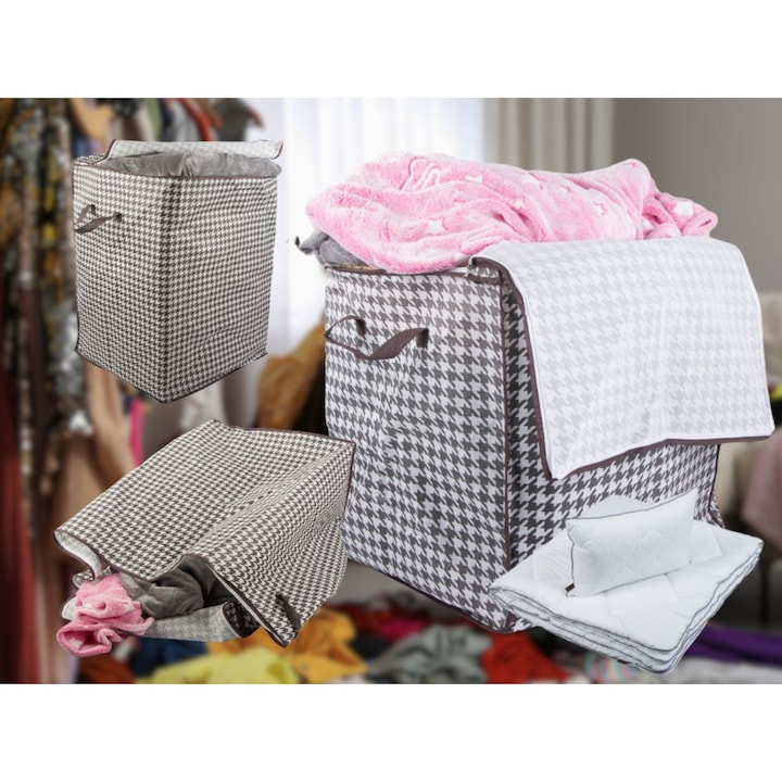 Transforma-ti dulapul intr-un spatiu bine organizat si functional cu ajutorul acestui organizator textil pliabil, ideal pentru depozitarea hainelor de sezon, a lenjeriilor de pat, prosoapelor sau a altor articole voluminoase. Cu o capacitate generoasa de 180 de litri, acest recipient este perfect pentru a maximiza spatiul disponibil, fara a renunta la ordine si estetica.