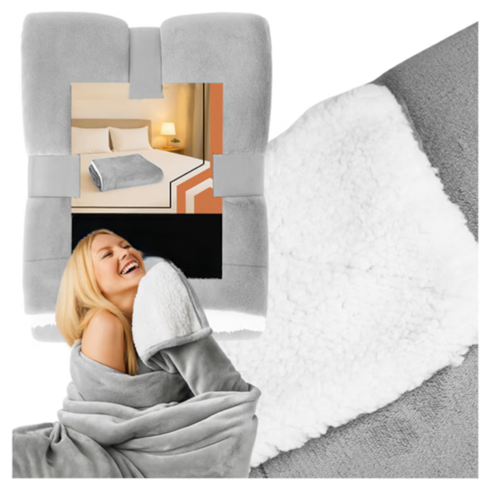 Datorita designului fata-verso, patura ofera doua fete cu texturi diferite – una neteda si eleganta, cealalta pufoasa, asemanatoare blanitei de miel, pentru o caldura intensa si o senzatie de rasfat.