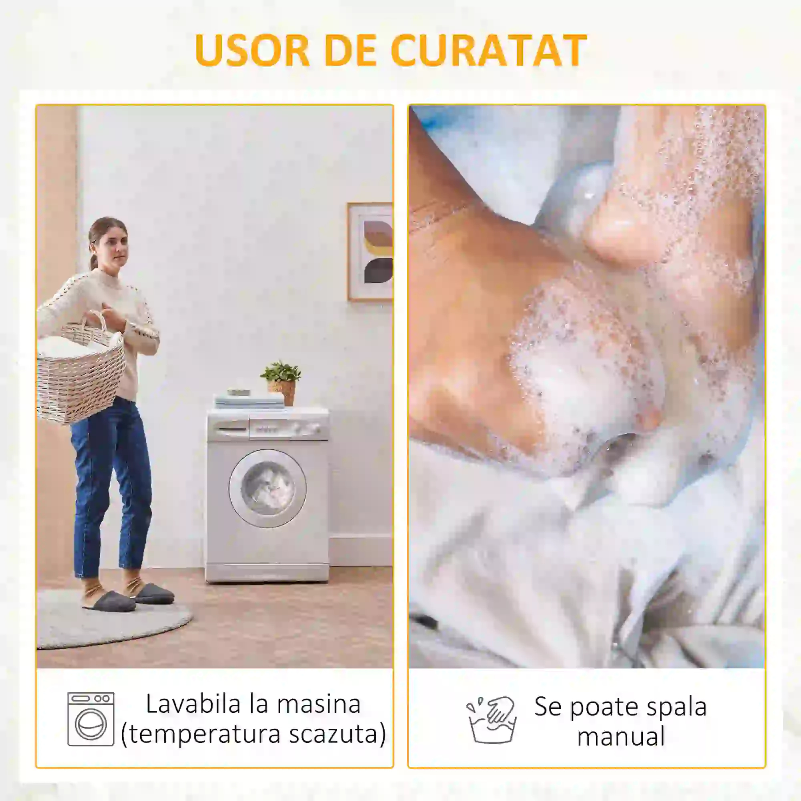 Este usor de intretinut, se spala la masina la 30°C, nu se sifoneaza si isi pastreaza forma si aspectul elegant chiar si dupa numeroase utilizari.