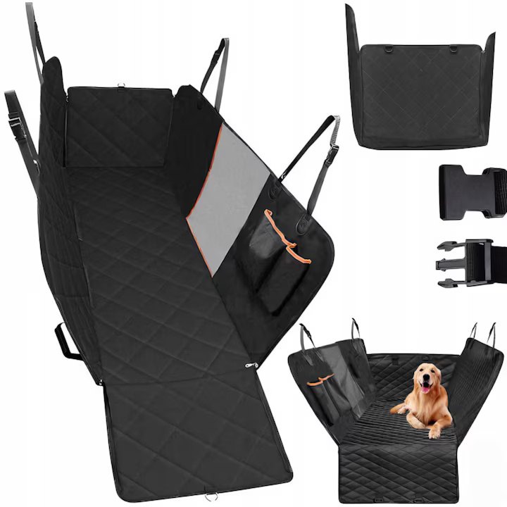 Husa Auto Profesionala VarioShop®, Pentru Protectie si Transport Animale, Caini si Pisici Destinata Banchetei Auto sau Portbagajului, Fereastra Observare, Sectiuni Laterale tip Hamac, Antialunecare, I