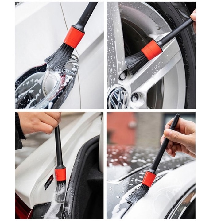 ✔ 5 DIMENSIUNI DIFERITE – Setul include 5 perii, fiecare cu un diametru diferit, astfel incat sa ajungi cu usurinta in fiecare colt al masinii. Indiferent daca ai nevoie sa cureti orificiile de ventilatie, consola centrala, butoanele sau jantele, acest set iti ofera precizia necesara.